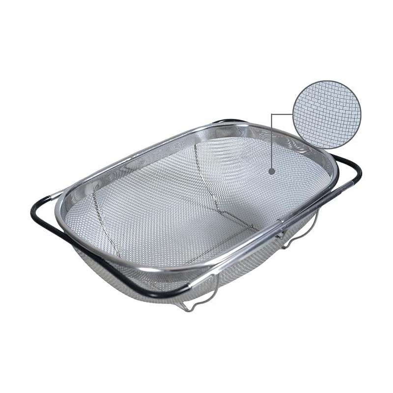 - 【Universal Fit】 : The fine mesh strainer designed with sturdy rubber grip handles that can extend from 14" to 21", making it suitable for most sinks.