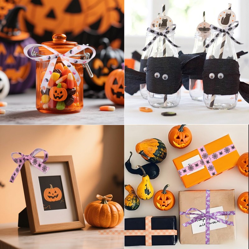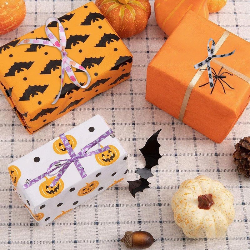 - 3. Classic Halloween elements: Halloween ribbons are printed with so many cute Halloween patterns, such as spider webs, pumpkins, or trick-or-treat candies, etc. These ribbons will help you create a Halloween atmosphere and let you feel the joy of the festival.