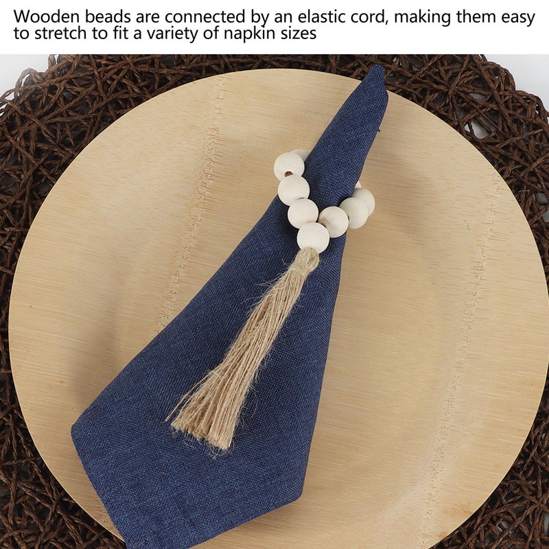6 Servilleteros de Cuentas de Madera con Borlas, Servilletero para Navidad, Granja, Boda, Hogar, Mesa de Comedor, Decoración de Fiesta