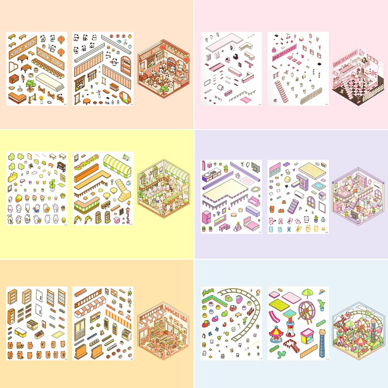 - Make Your Own Mini House: There are 6 different themes, house, convenience store, garden, inn, amusement park, cat cafe. Unleash your creativity and use the cute cartoon stickers in the set to create a unique mini store