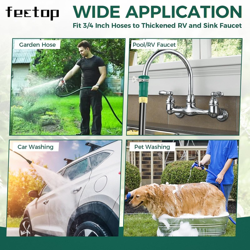 • 【Wide Usage】The hose adapters make connecting hose to outdoor faucets or water sources effortless. Suitable for indoor and outdoor use such as RV, garden watering, car washing, pet cleaning, floor washing, boating, camping, sink, bathtub, sewer, kitchen and so on