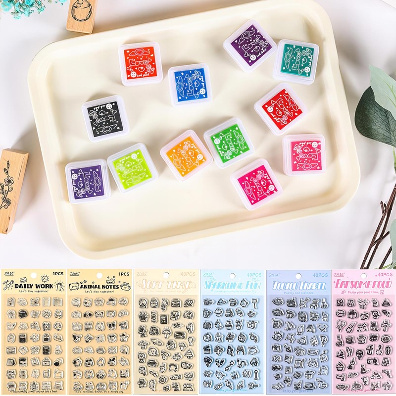 - 【Useful Combination Set】The rubber clear stamps set contains 6 sheets of silicone stamp cards(40 patterns / pcs), 1 pcs 3cm acrylic stamp blocks, 12 colors of craft ink pads, a practical combination of the set is enough to meet your needs for a variety of card making decorations or crafts