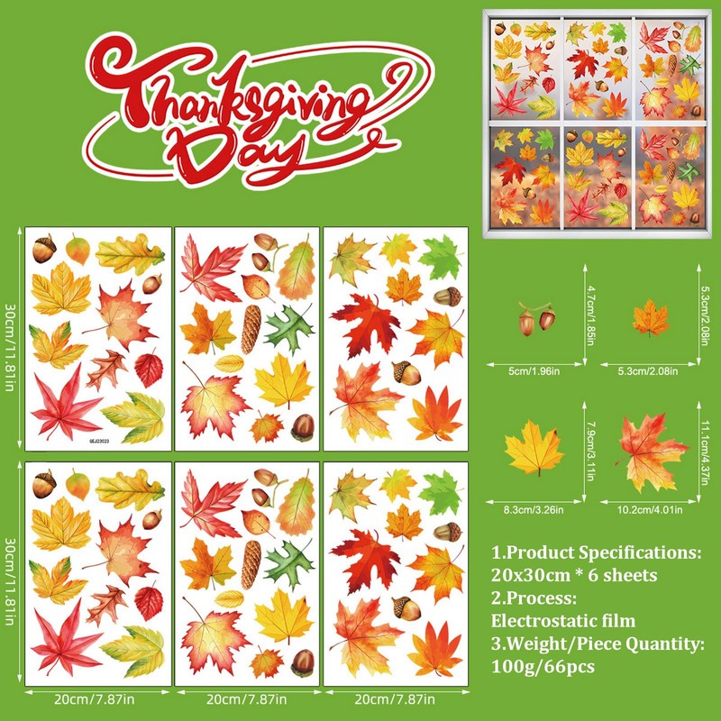 - Diverse Designs: This set of window stickers is designed with Thanksgiving as the theme, including various interesting and realistic maple leaf patterns. I think you will definitely like it