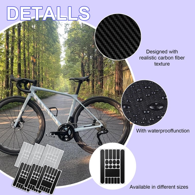 6 Stück Fahrrad Rahmenschutzfolie, Lackschutzfolie Fahrrad, Schutzfolie Fahrradrahmen, Wasserdicht, Carbon-Optik, Transparent und Schwarz