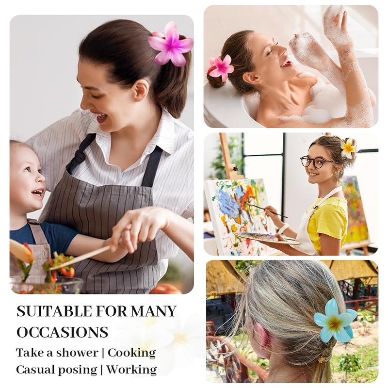 6 Stück Haarklammer mit Blumen-Motiv für Frauen, Rutschfeste Acryl Niedliche Blumen Haarspangen, Hawaiianische Plumeria Haarspange, Geschenke für Frauen, Teenager, Mädchen