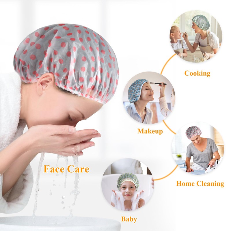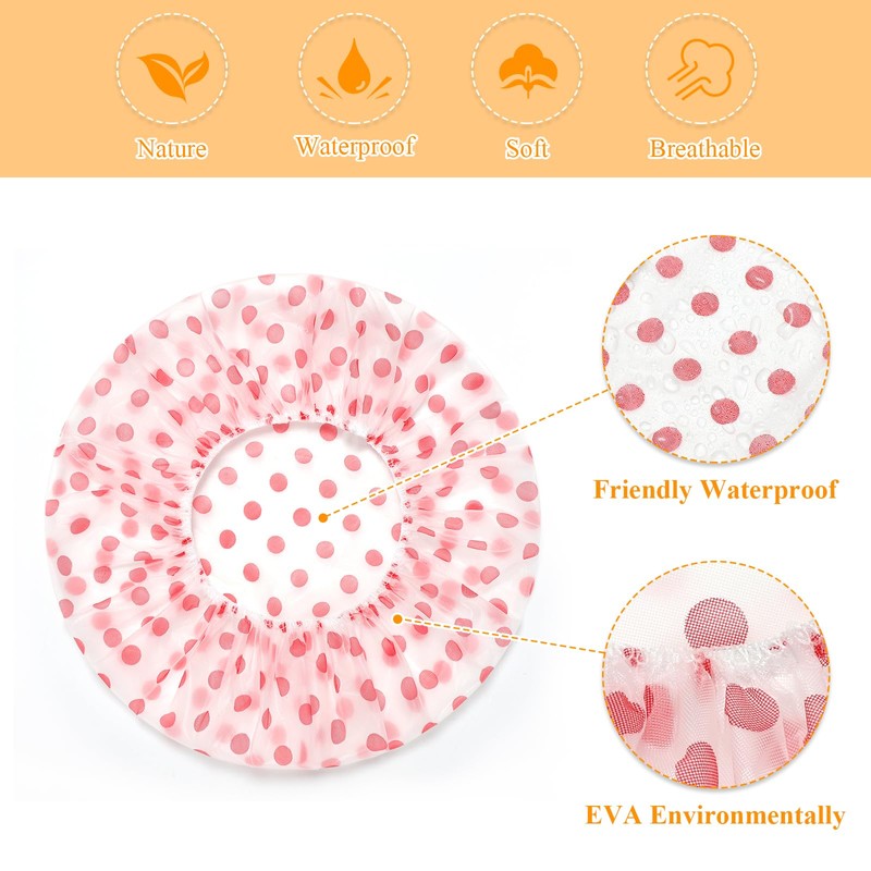 【6 STÜCK】 Mugust Duschhaube für Damen,wasserdichte und Wiederverwendbare Duschhauben,Punktmuster Shower Cap mit Elastischem Band,große Kunststoffkappe für Langes Haar