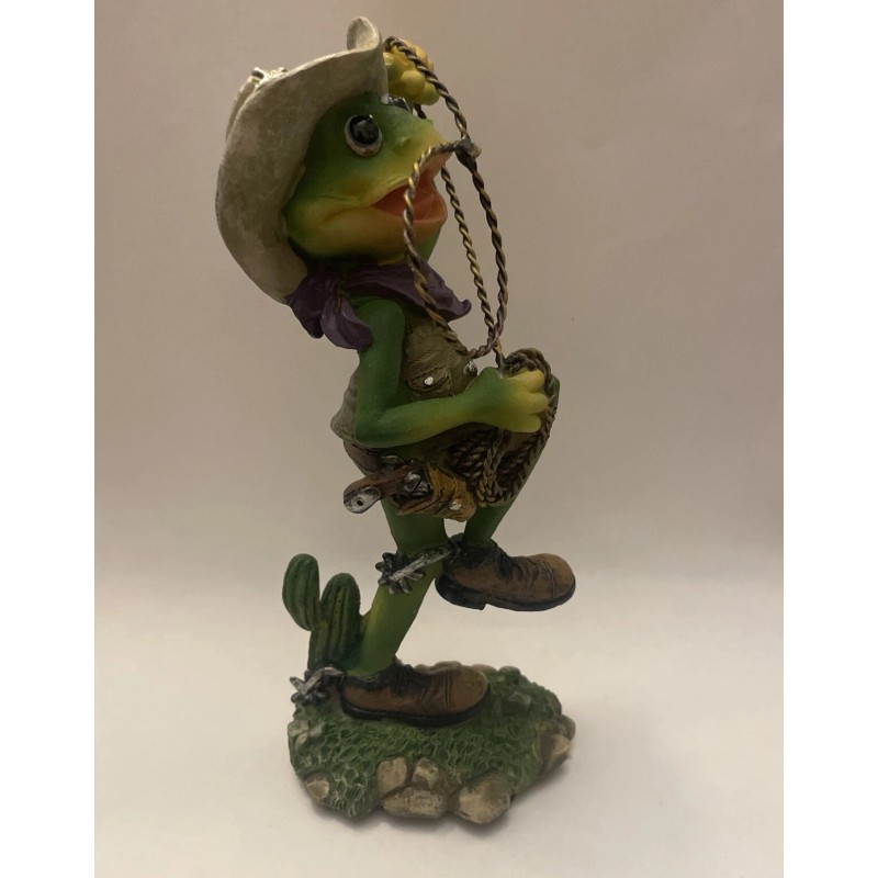 6” Tall Green Cowboy Frog Resin Figurinevintage collectable Statue