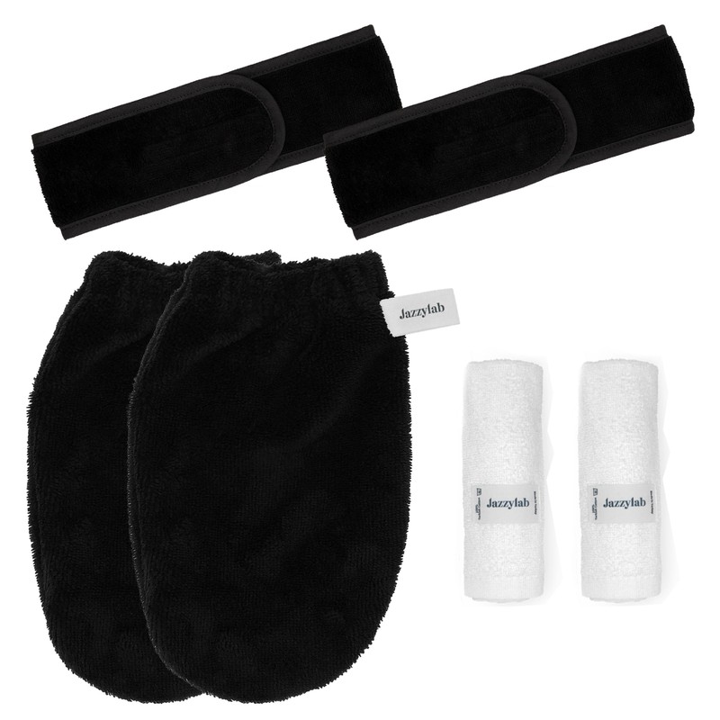 6-teiliges Make-up-Set – 2x Kosmetik Haarband, 2x Waschhandschuh & 2x Waschlappen – Für Gesichtsreinigung, Pflege & Wellness – Weiche Frottee-Qualität (100 % Baumwolle)