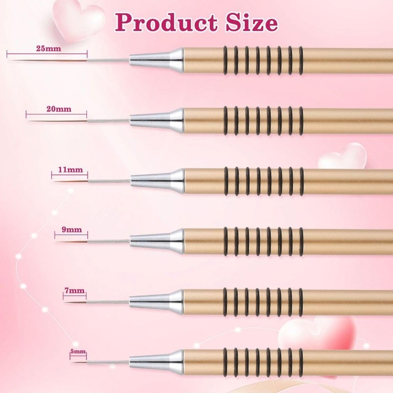 - 【Präzision und Vielseitigkeit】Unser Nailart-Liner-Pinsel-Set enthält 6 Pinsel unterschiedlicher Größe, die komplizierte Designs ermöglichen und die hohen Standards professioneller Nagelstudios und Nagelkunst-Enthusiasten erfüllen.
