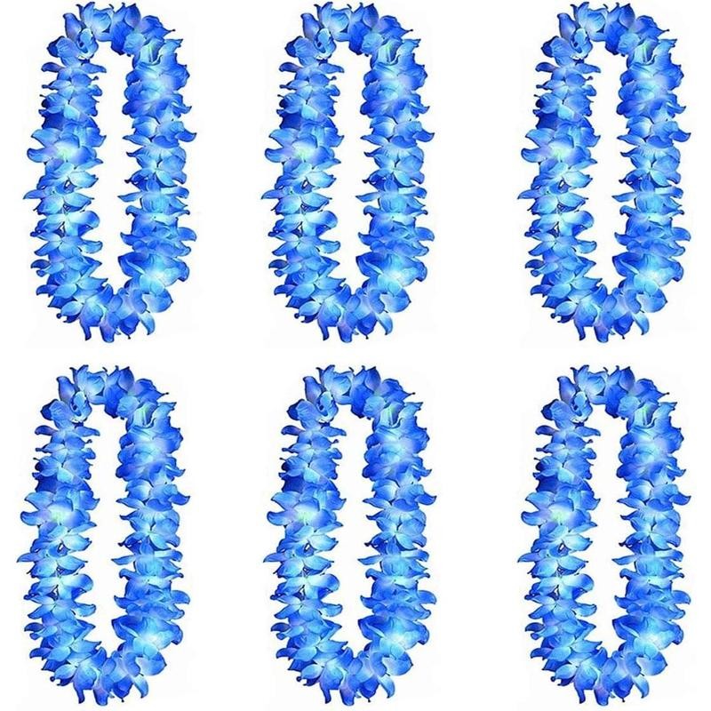 6 Thicken 41 Inch Blue Hawaiian Leis for Graduation Party Dance Photo Prop in Outdoors (6 Pcs) - Size: 6 Pcs