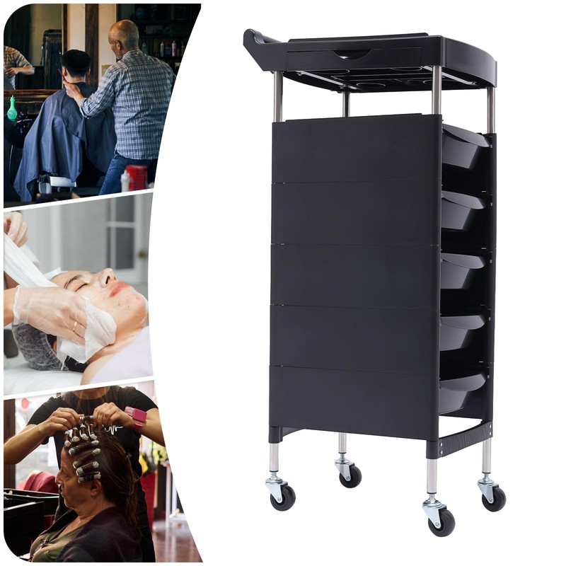 - ⛺ 【Ample Storage Space】This salon trolley cart has 5 easy pull-out drawers which can provide you with enough storage space. In addition, the top work area and 2 side trays that slide in and out provide an extension storage space when needed; Our beauty salon cart can provide ample storage space to store all your beauty, hairdressing, cosmetics, and manicure supplies.
