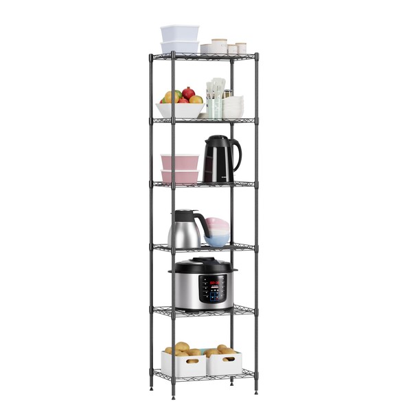 - Spacious Storage: This 6-tier shelving unit offers plenty of storage space with dimensions of 17"D x 12"W x 64"H. Its tall and narrow design maximizes vertical space without taking up too much floor area. Perfect for use in kitchens, offices, garages, and pantries to keep everything in order.