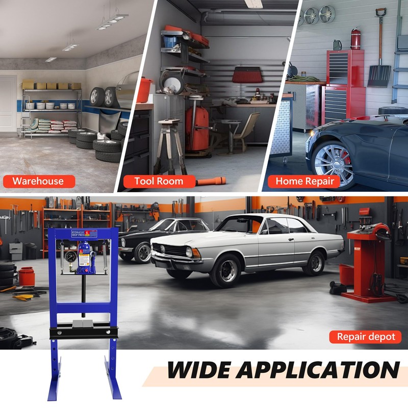 - Strong & Stable Construction: H-shaped frame structure ensures a sturdy base, preventing wobbling or shaking during operation. Crafted from robust carbon steel, the hydraulic press offers durability and stability for consistent performance.