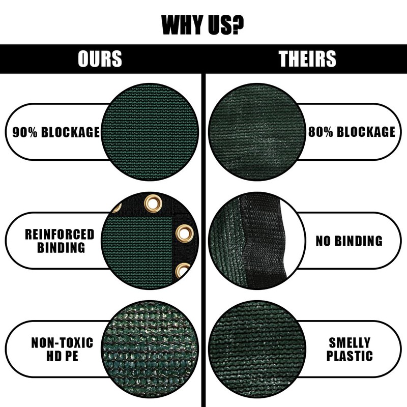 - ✔️【Material】- Made of commercial grade new HDPE (High Density Polyethylene), allowing air to go through and resisting water and all weather condition. Passed HD5050S TEST, it has excellent tenacity, can resist UV rays & wind, prevent fading, and maintain strength for a long time.