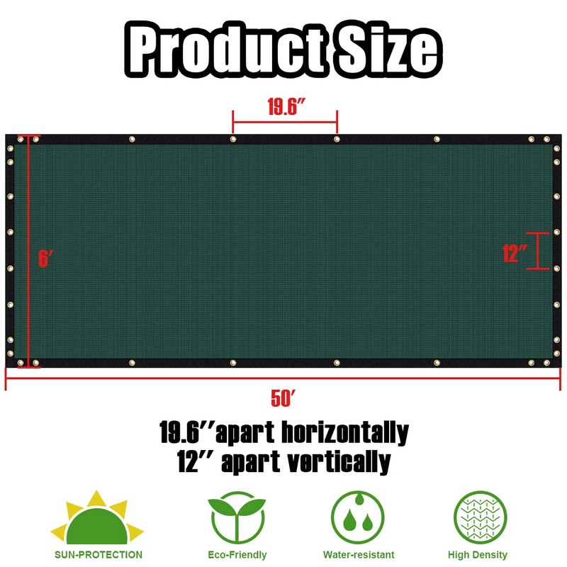 - ✔️【Size】- 6' x 50', please measure the size of the venue before purchasing and you can cut it appropriately, but in order to make the product last longer, try not to cut it.【Package Includes】 -1 x Privacy Screen Fence + 75 Zip Ties.