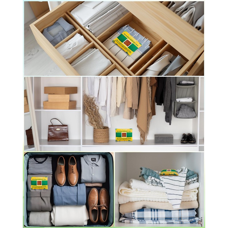 • Versatile and Practical Use: These rechargeable desiccant bags are perfect for a wide range of applications. Use them in cars, closets, basements, garages, storage areas, or any enclosed space that requires moisture control. Their versatility makes them ideal for protecting furniture, clothing, electronics, documents, and more, providing peace of mind wherever you need it