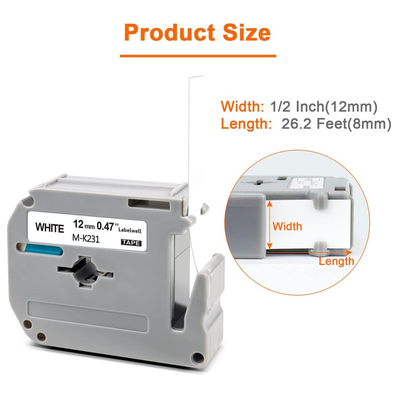 - Product feature:Labelwell compatible for M-K231 tape has the advantages of water resistance, oil resistance, scratch resistance, high and low temperature resistance, corrosion resistance and easy peeling