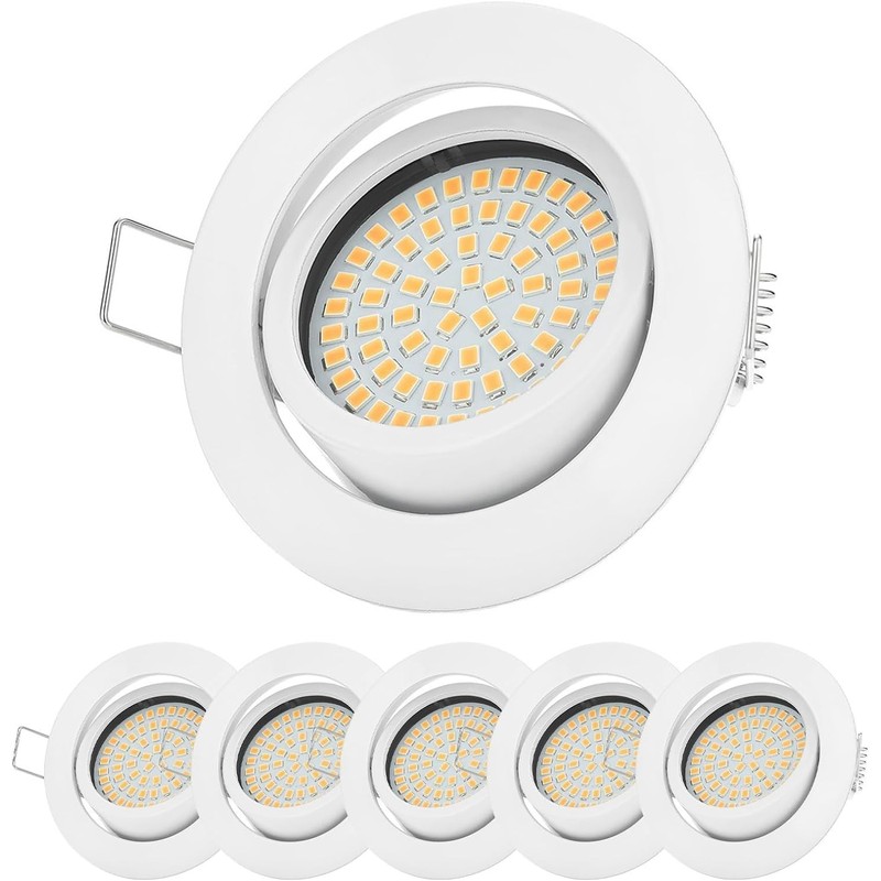 • Strong light output and energy efficient: each LED spot 5W delivers an impressive 450 lumens of cool white light (6500K) with a wide 120° beam angle, which corresponds to a 50W halogen spotlight. These LED recessed spotlights 230 V are extremely energy efficient and offer no flicker or noise for a pleasant lighting experience.