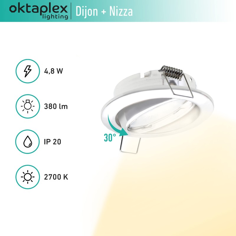 6 x Octaplex recessed luminaires swivelling Dijon with Nice LED module 4.8 W 230 V 2700 K 380 lm warm white 110° spotlights white hole size 68 mm