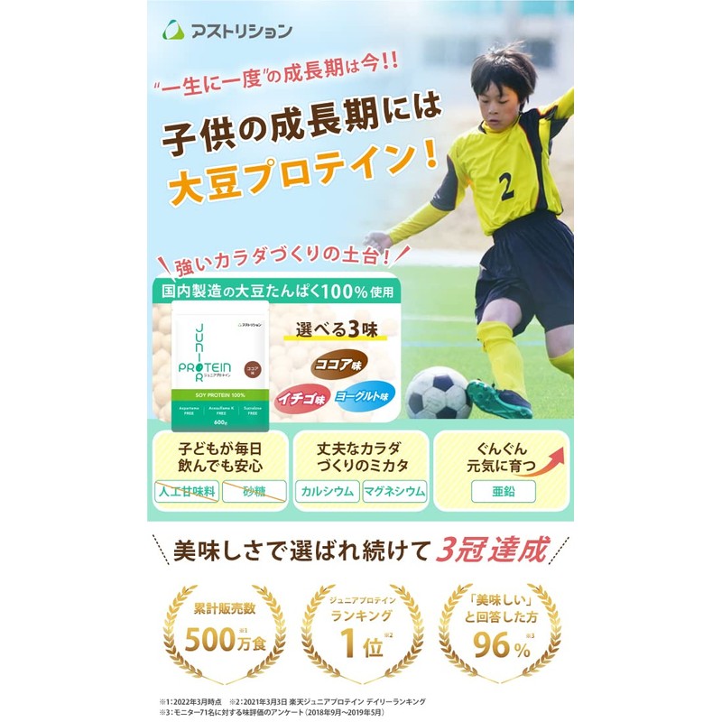 アストリション ジュニアプロテイン 大豆 人工甘味料無添加 甘さ控えめ いちご味 【60食分】600g 子供用