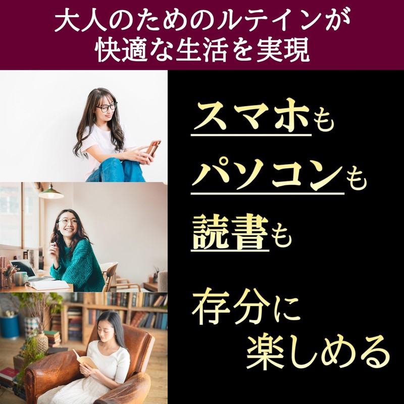- ✅主成分のルテインは体内に存在する状態と同じフリー体のみを使用。毎日のくっきりクリアな生活をサポートします。