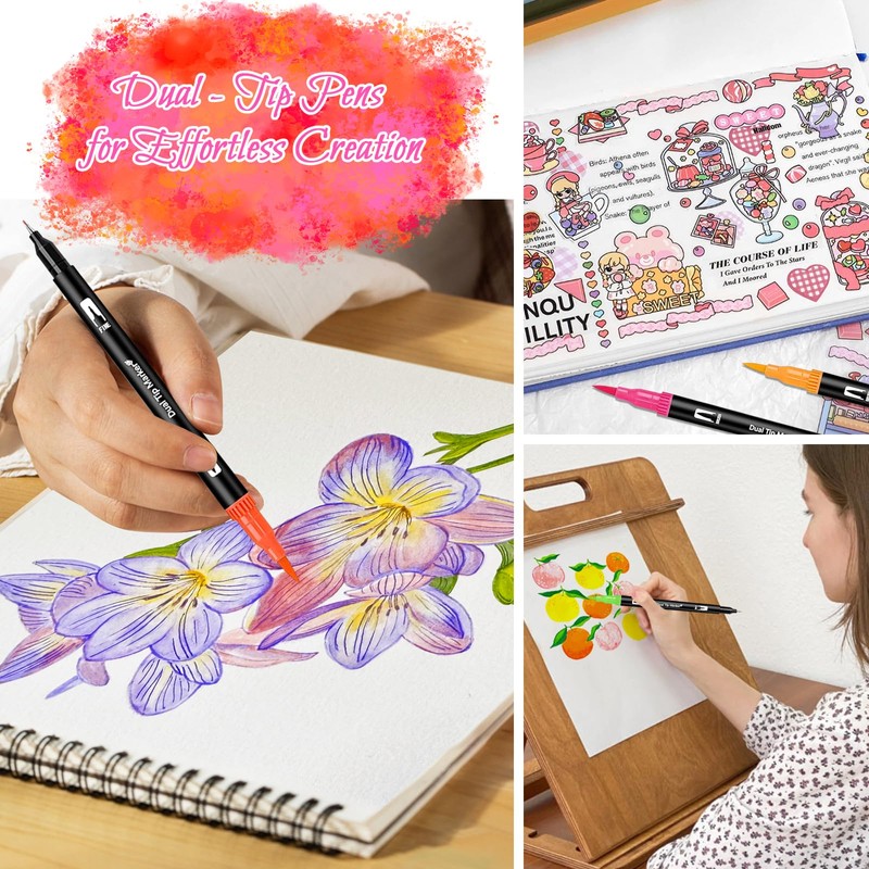- 【Dual - Tip Design】:Our brush pens are cleverly designed with a 0.4mm nib, perfect for sharp line - work, and a 1 - 5mm brush tip, ideal for effortless color - filling. This setup caters to every creative urge, whether you're drawing, coloring or lettering.