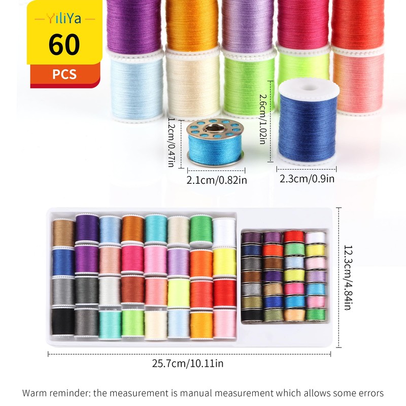 - ✔【Bobbin sewing thread set】The 60-piece sewing thread kit comes with 60 different colour threads. 32 different thread reels in different colours and 28 metal spools. The multi-colour selection offers the customer a variety of options when it comes to stitch colours. It is an ideal accessory that offers beautiful vibrant colours that can help with creativity.