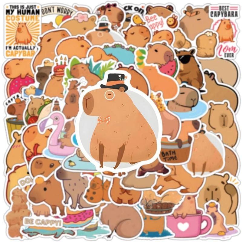 60 count Capybara Stickers Vinyl Aesthetic Cute Cartoon Decals Stickers for Laptop, Water Bottles, Skateboard, Book, Scrapbook Luggage Capybara Decals for Adults, Teens,