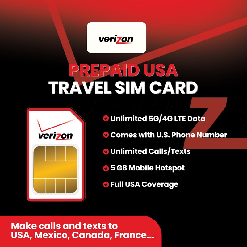 (60 Days) USA Verizon Prepaid SIM Card | Unlimited High-Speed 5G Data in The US | Unlimited Calls/Texts
