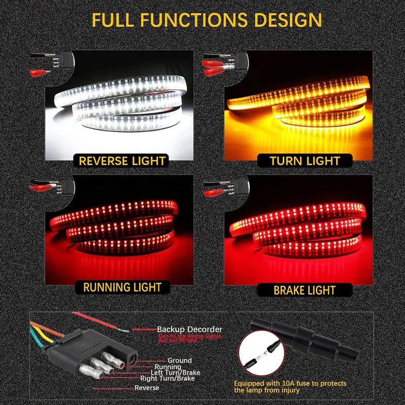 - 【SPECIAL NOTE】If you connect a 4-pin tailgate light bar to a 7-pin connector using a 7-pin to 4-pin adapter, our 60'' tailgate light bar may not work properly. To avoid this, you need to purchase a "7 Pin to 4 Pin Trailer Adapter" or "7 Pin to 4 Pin Trailer Harness with Reverse 12V Wire ".