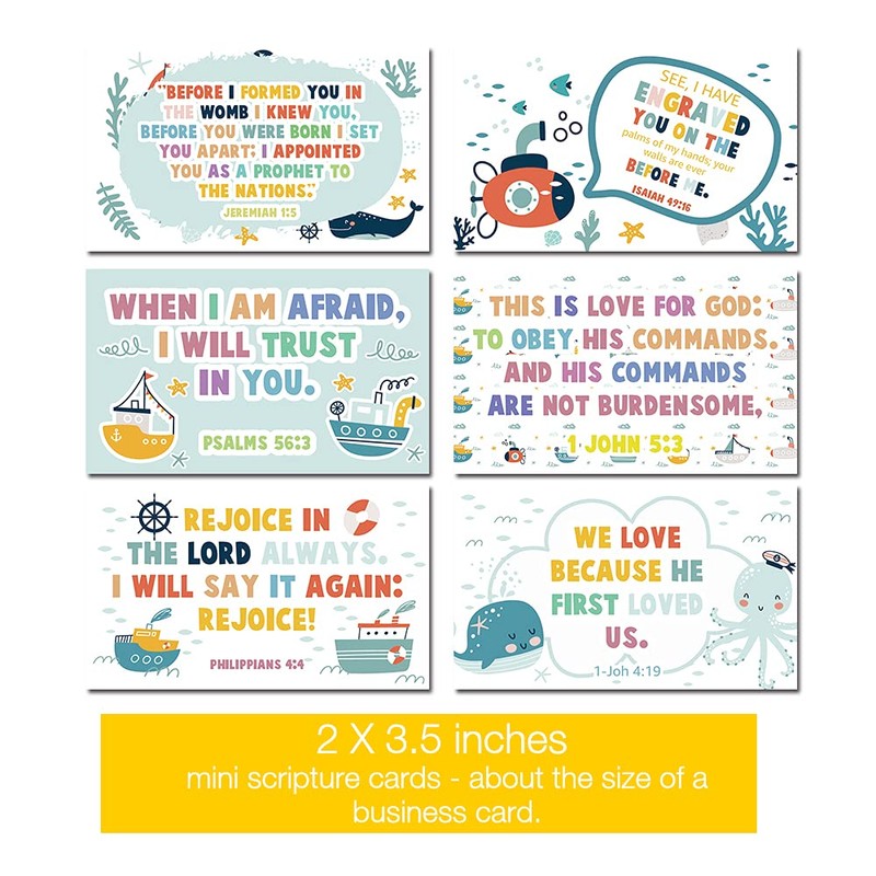 60 Mini Inspirational Christian Greeting Cards of Encouragemen, with Assorted Bible Verses Perfect for Children’s Bible Studies, Inspirational Kids Gift for Child, 2"X3.5", Daily Devotional, J389
