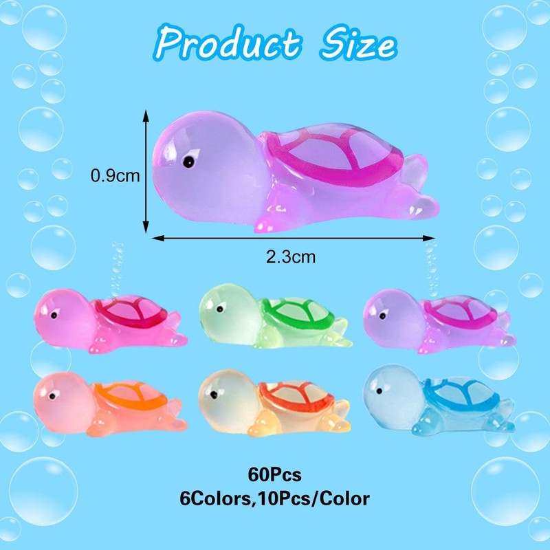 - 【Product Content】 You Will Receive 60 Mini Luminous Turtles, Measuring 0.9*2.3Cm, In Colors Including Rose Red, Blue, Orange, Yellow, Green And Purple, Suitable For Decoration And Game Purposes.