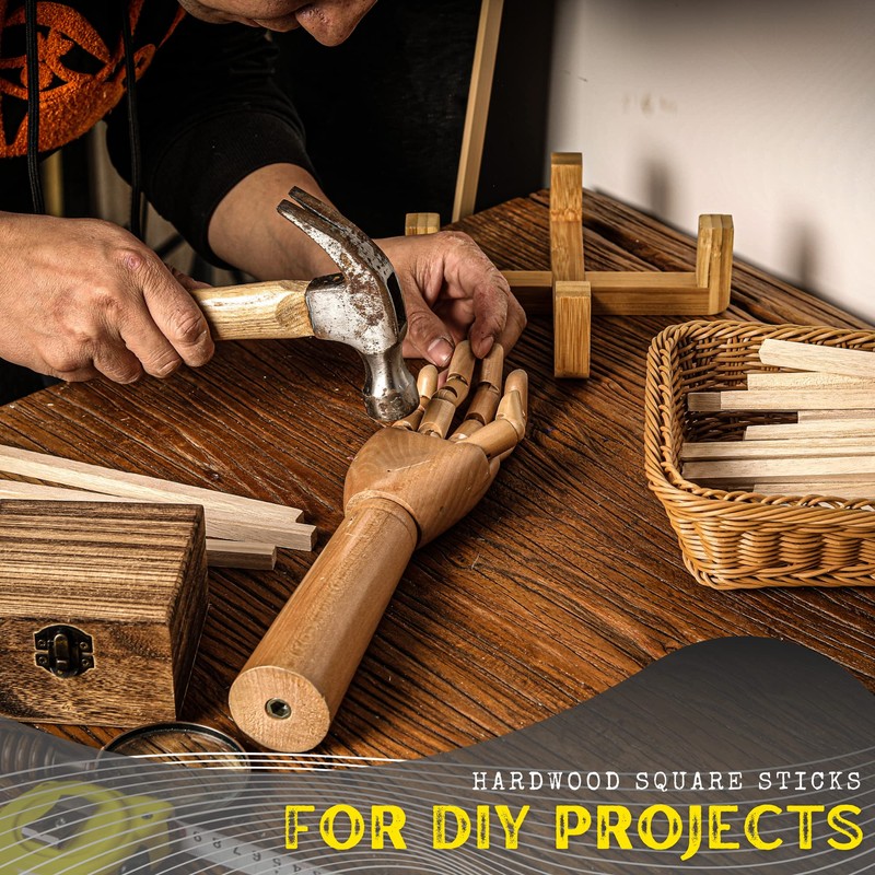 - HARDWOOD SQUARE STICKS FOR DIY PROJECTS - these square sticks are stronger, durable, and versatile compared to soft and lighter wood dowels. They’re excellent for students, hobbyists, and even commercial use.