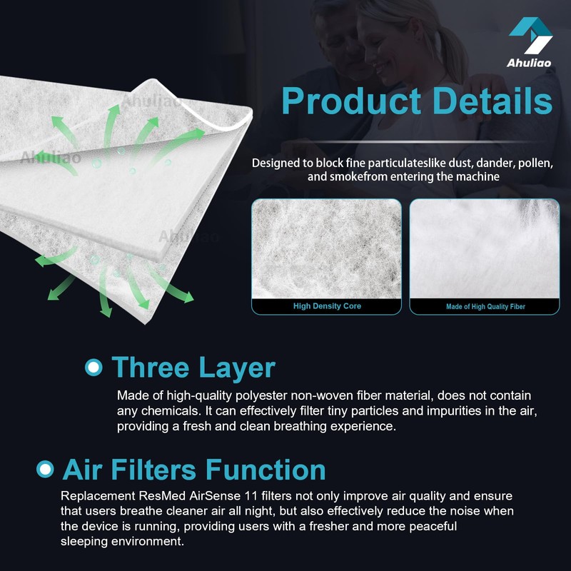 - 【Fits AirSense 11 Air Filters Function】Replacement ResMed AirSense 11 filters not only improve air quality and ensure that users breathe cleaner air all night, but also effectively reduce the noise when the device is running, providing users with a fresher and more peaceful sleeping environment.