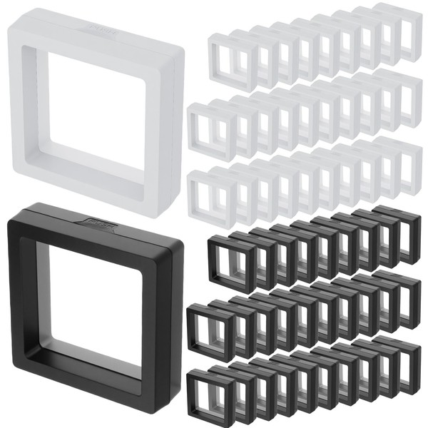 60 Pcs 3D Floating Display Case 2.8 x 2.8 x 0.8 Inch Coin Frame Display Holder Stands for Antique Challenge Coins, Jewelry, Shells, Gems, Minerals, Rocks, Specimen, Pins(Black,White)