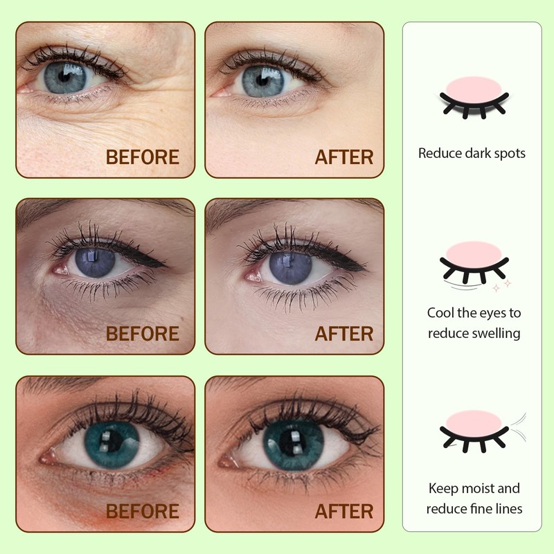 - Unsere hochwertige Augenmaske kann Feuchtigkeit tief eindringend speichern, Trockenheit und Schwellungen verbessern, Falten reduzieren und bei kontinuierlicher Anwendung dunkle Augenringe, Tränensäcke und Krähenfüße aufhellen.