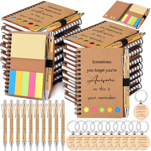 60 Pcs Employee Appreciation Gifts Inspirational Spiral Notebooks with Sticky Notes Notepads Encouragement Bamboo Pens Bulk Wooden Motivational Keychains for Coworkers Teacher (Sometimes)