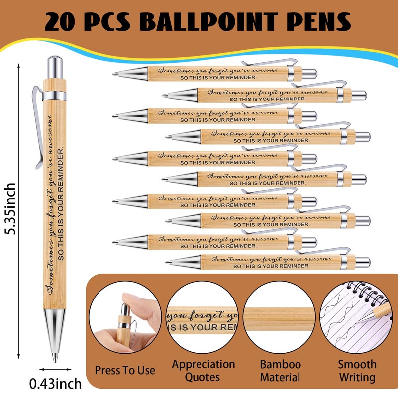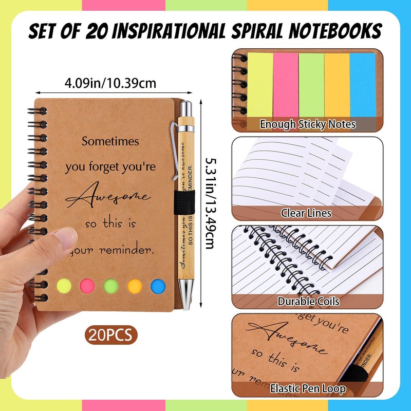 - Package Contains: you will get 20 pcs employee appreciation spiral notebooks, 20 pcs motivational wooden keychains and 20 pcs inspirational ballpoint pens, the sufficient quantity can meet your use and replacement needs in daily life