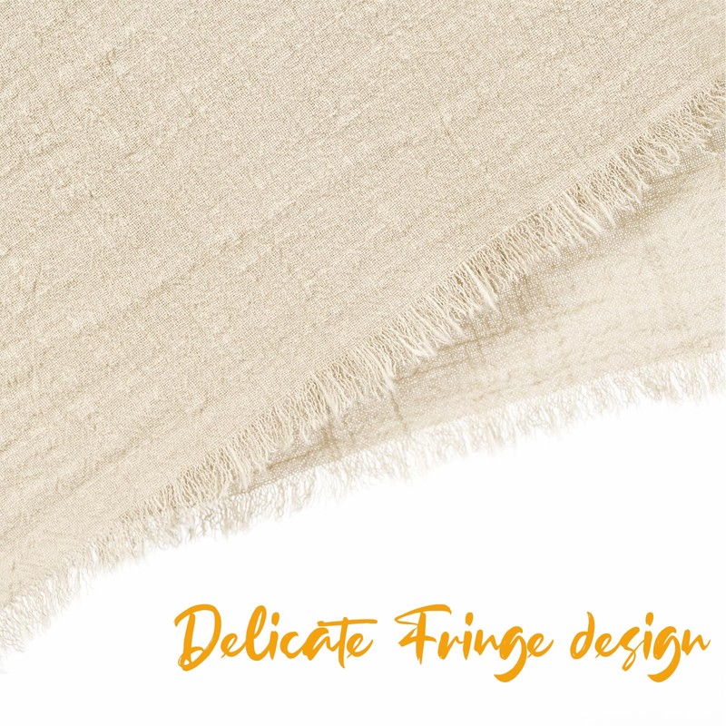 - Soft Cotton Napkins:In this package,you will get 60 pcs delicate natural cotton cloth napkins with fringe,made of quality cotton fabric.Durable,soft,light and breathable,will work well with rustic themed decor.Give your table a country vibe, elegant and beautiful.Fringe design just looks really chic and aesthetic,endows your guest a relaxed and return to nature environment,can easily be incorporated into different styles for any season and important occasion!