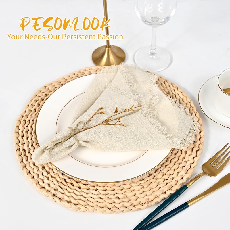 - Wide Applications:If you want a different look wedding or banquet,this wrinkled rustic boho dinner napkins is unique and delicate,it's a pretty choice instead traditional napkins. exquisite workmanship make it can match any important occasions,such as hotels,weddings,restaurant,banquet,parties,anniversary and picnic,can easily be incorporated into different styles for any season and important occasion.