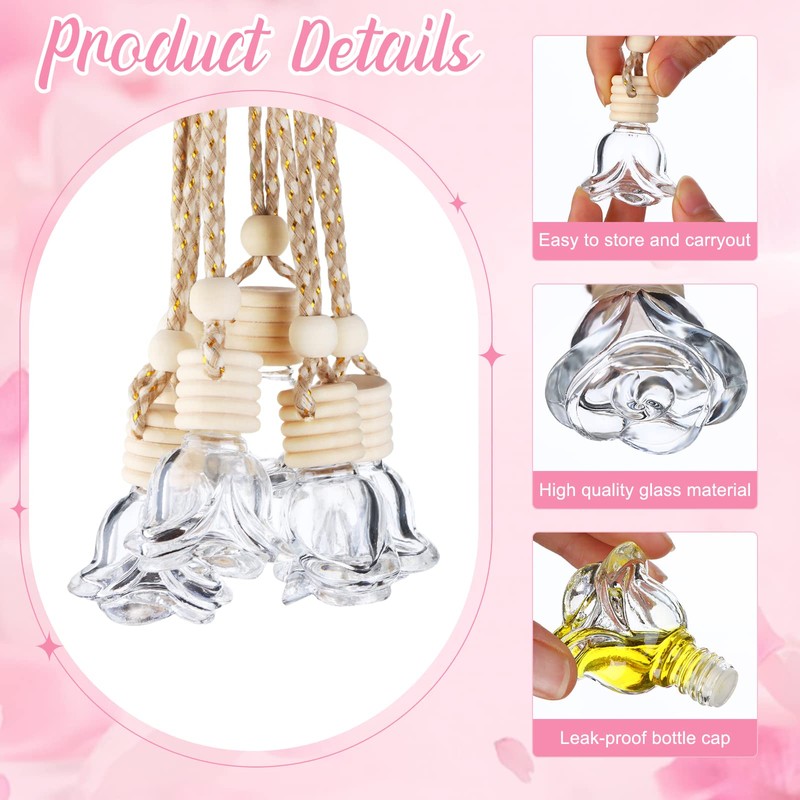 60 Pcs Hanging Car Air Freshener Car Diffuser Bottles Empty Glass Perfume Bottles Air Freshener Diffuser Bottle Pendant for Essential Oils Fragrance Aromatherapy Ornament Decor (Rose Style)