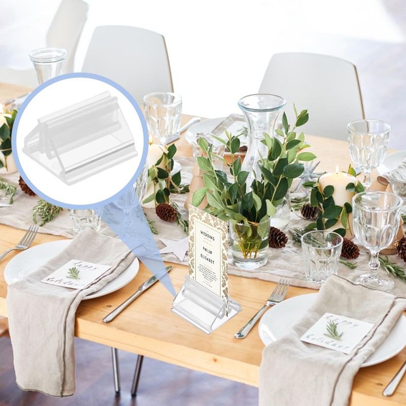 The transparent menu holder is made of plastic, which is sturdy and not easy to deform. It can carry various types of cards or papers, and the holder can also accommodate various types and thicknesses, ensuring that you can use it with confidence