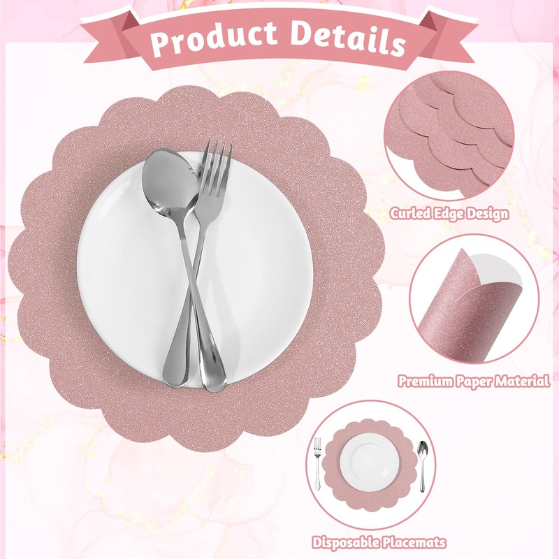 - 【Wide Application】Whether you use it at a family gathering, party, wedding or birthday party, this disposable glitter placemat can attract the attention of guests, create a unique atmosphere, and make your party more luxurious and charming.