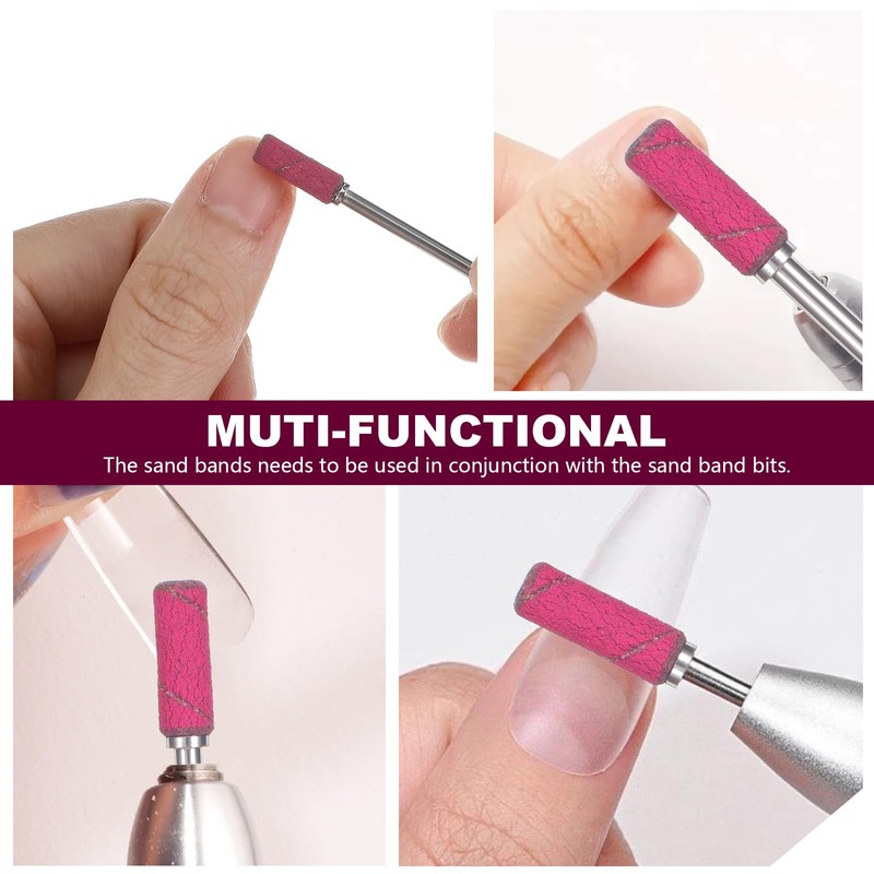 - High-quality material: The small sanding band nail drill bit adopts sand ring and stainless steel. The sand ring part has good polishing performance, which can effectively remove gel, shape acrylic nails and trim the nail surface; the stainless steel part is strong and durable, ensuring the stability and reliability of the mini sanding bands for nail drill in long-term use