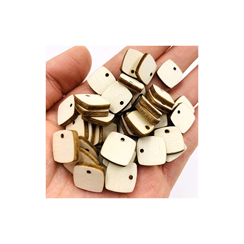 60 Pcs Square Wood Stud Earring Blanks 1/2" Laser Cut Shapes (Hole)