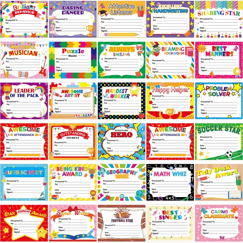 - Package Includes: 60 award certificates for students with 30 different designs; each award certificate measures 8.5" x 11", suitable size to distribute to the students in the class