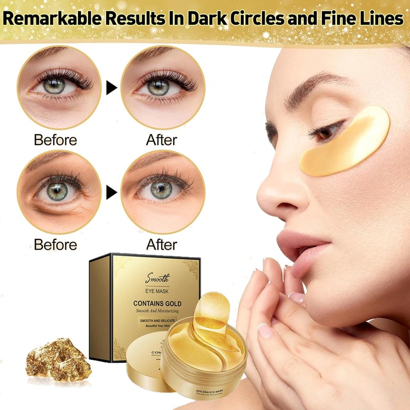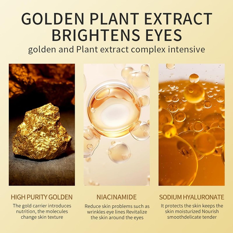 - Safe & Effective Ingredients: This 24k gold eye mask is made with plant collagen, 24K gold hyaluronic acids, glycerin, and other natural ingredients, which can promote blood circulation, improve metabolism, deeply repair the eye skin, help soothe, rejuvenate & protect your skin.