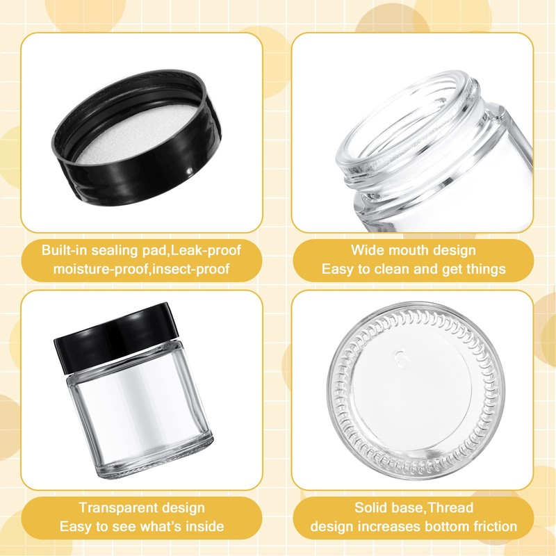 - Sealed and Clear: the glass small mason jars come with black plastic lids, which can provide a nice sealing effect for your cosmetic storage; With clear designs, the round glass containers allow you to check the remains conveniently and refill them in time