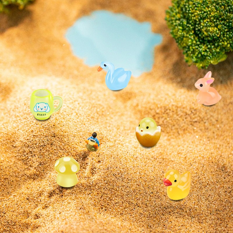 60 Pieces Mini Animal Luminous Resin Ducks Miniature Figures Small Ducks Mushrooms Swan Pig Dolphin Ducks Chicken Rabbit Miniature Figures for Garden Landscape Dollhouse Ornament DIY Craft Decorations