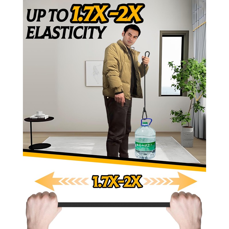 Our iron carabiner hooks with an electrophoretic coating are more durable, rust-resistant, and less likely to break or bend than ordinary aluminum alloy hooks. So these heavy duty bungee cords won't slip or loose, making for easy fastening.